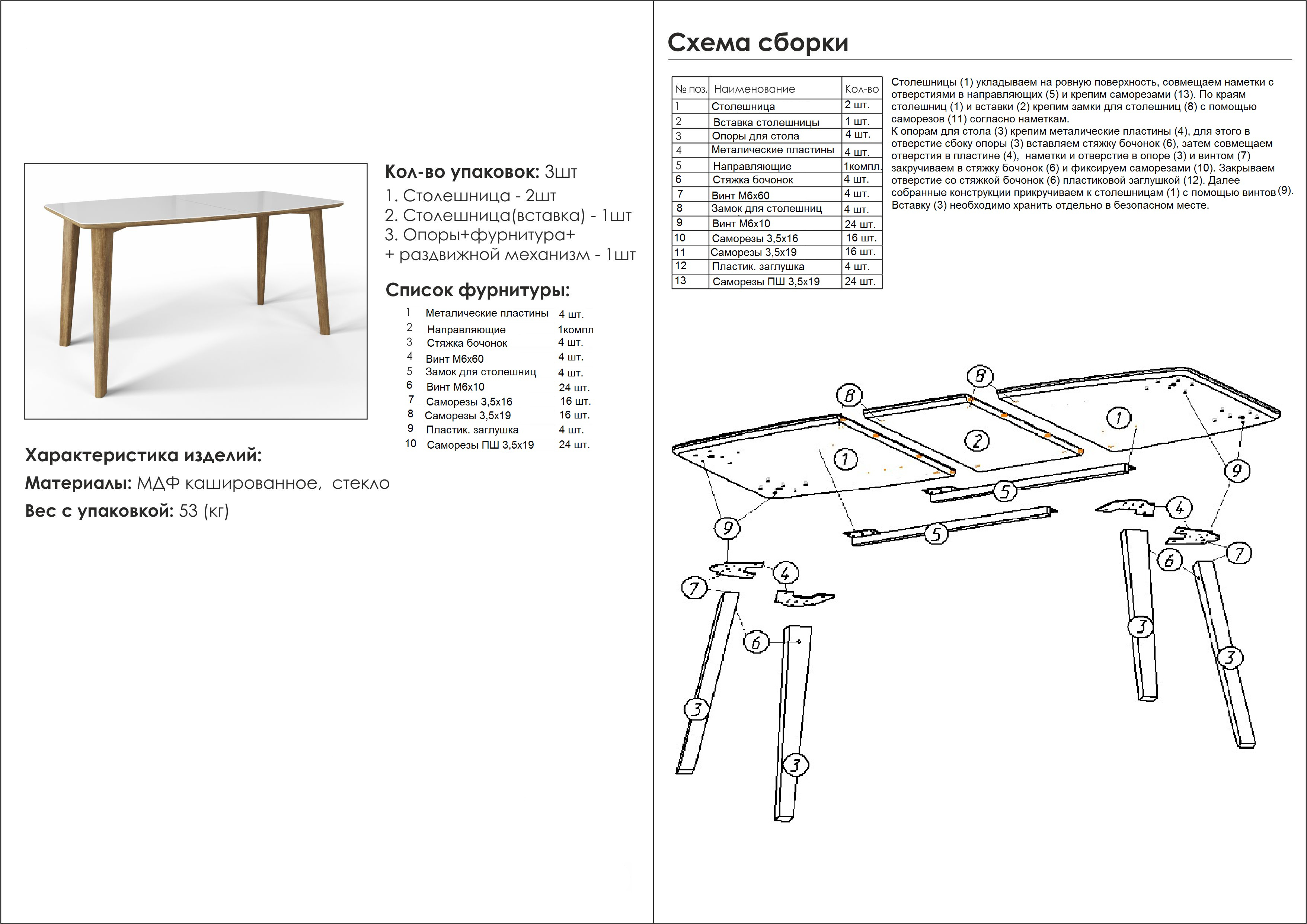 Материал столешницы: стекло