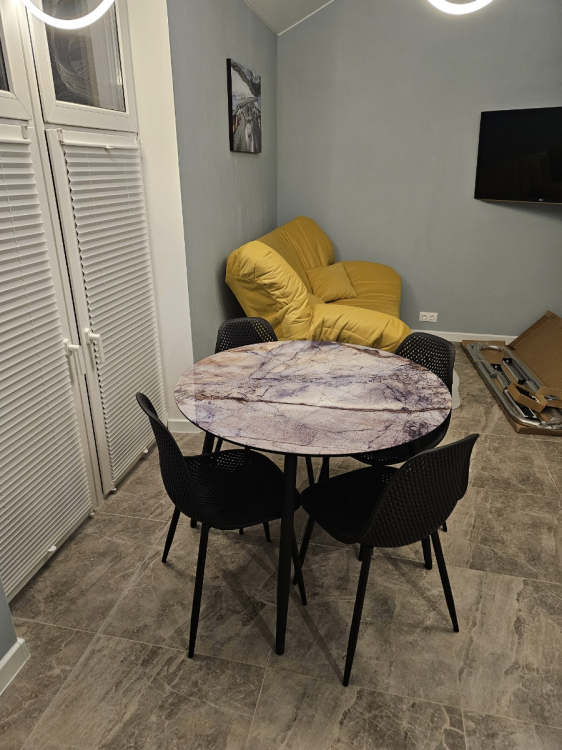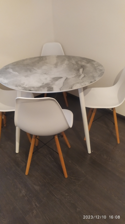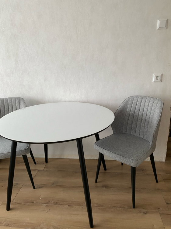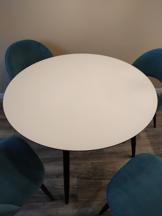 Хотели эту модель с белыми ножками, но взяли такой, как был, с черными. Товаром довольны, спасибо производителю!; Достоинства: Отличный стол, качество на высоте, не громоздкий, смотрится современно, красиво. Доставили хорошо упакованным, вовремя. Продуманная легкая сборка, собирается быстро, без проблем.; Недостатки: Нет, к покупке советую.
