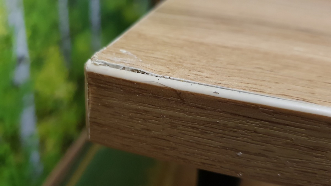 Упаковано хорошо, на углы столешницы были установлены пластиковые накладки, чтобы защитить их от ударов. Но, к сожалению, один угол немного повредился. Всё остальное в порядке, без трещин и без царапин. Были трудности с завинчиванием винтов крепления ножек к столешнице. Отверстия на ножках и на столешнице сделаны со смещением, так, что винты еле-еле удалось вставить. И закручивались с большим усилием.; Достоинства: Красивый, крепкий, стильный. В комплекте есть всё необходимое для сборки.; Недостатки: Неточная разметка отверстий под винты крепления ножек.