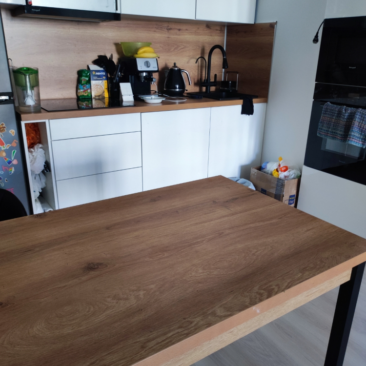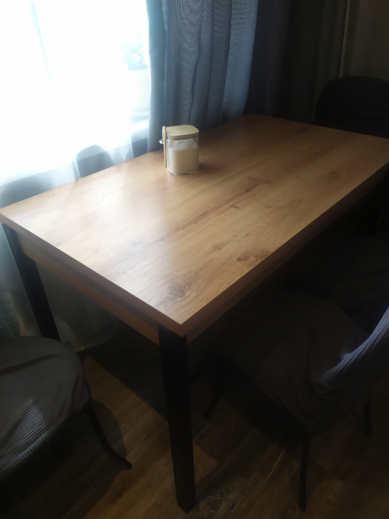 Стол привезли в целлости и сохранности. Смотрится очень хорошо, не шатается, не скрипит, все фкрнитура на месте. В разложенном виде простот огромный) Раскладывать очень легко, все продуманно. спасибо продавцу; Достоинства: Суперский стол, очень долго искала, чтобы сочетался со столешницей гарнитура. быстрая сборка, доставка.; Недостатки: нет