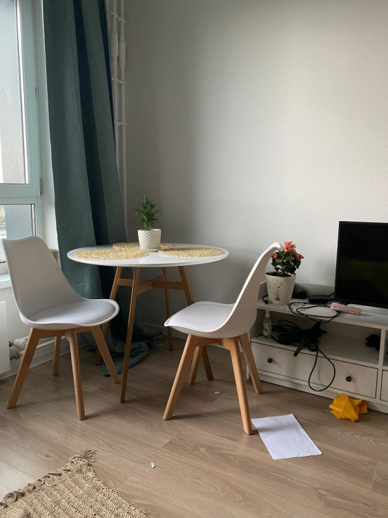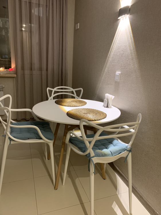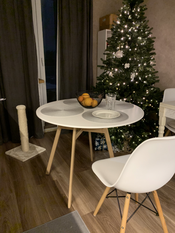 Заказали данный стол и мы очень рады! Стол в использовании неделю Ножки по высоте отрегулировали (хотя курьер почему-то настойчиво заверял, что нет регуляторов, даже расстроилась в начале), но муж собрал, отрегулировал по высоте и все ок) Диаметр 90 см, 4 человека спокойно умещаются. О том, что стулья будут не заходить под стол знали Без дефектов, столешница очень приятна на ощупь. Но на перекрестии металлических ножек внутри ржавчина. Сборка заняла минут 10 Стулья также заказывали ранее на ЛайфМебель