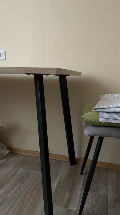 Один из столов застелили огромным ковром, теперь рисунка не видно и нормально. Но как бы ну..имейте в виду.; Достоинства: Столы хорошие, упакованы были отлично - пришли целые. Сборка очень легкая. Заказывали 2 шт. В эксплуатации почти 2 месяца, нареканий нет. Все очень нравится.; Недостатки: Большой минус (для нас) - столы пришли С РАЗНЫМ РАСПОЛОЖЕНИЕМ РИСУНКА. Они стоят рядом и это стремно. Подали рекламацию - сказали РАЗОБРАТЬ стол, прислать фото того как он выглядит в разобраном виде, посидеть без него неделю (минимум) и потом может быть нам бы произвели замену (только в том случае если при сборке не осталось дефектов и компания согласится на это). У нас компы за которыми мы работаем и сидеть 7+ дней без стола было очень плохой идеей. О том что столы могут приехать с разным расположением рисунка нигде не написано (по крайней мере не было, сейчас не проверяла). И как бы ладно один стол пришел не с продольным, а поперечным - ок, но когда их ДВА и они стоят рядом это прям вообще. И ведь не уточняет никто. А еще нам не отвечали по этому вопросу дней 5. Но мы заказывали в майские, возможно поэтому.