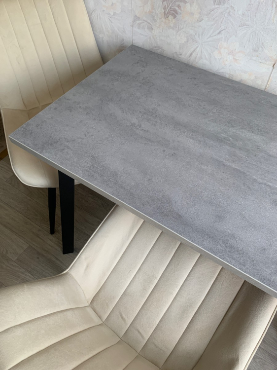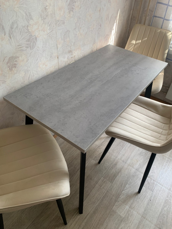 Стол прочный, не шатается. Столешница красивая, понравилась. Немного сплав на ножка не очень. Но он снизу его не видно, поэтому не критично. Собирает легко, комплектация была полная. Доставили в срок. Все супер. Свою стоимость окупает.; Достоинства: Прочный, устойчивый, красивая поверхность; Недостатки: Не очень сплав у ножек стола.