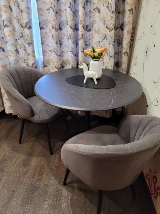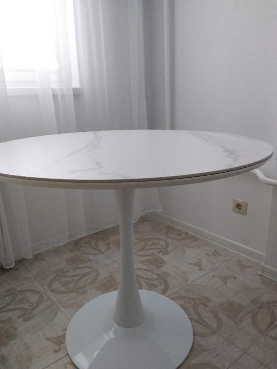 Стол понравился! Качество хорошее, крепкий, довольно тяжелый и устойчивый. Стильный, рада, что взяла именно такой, с рисунком на столешнице, потому что на нем не будет видно царапин, если вдруг появятся, (хотя на этом столе они и не остаются). По размеру для двоих человек просто отлично, да и втроем сидеть комфортно. Спасибо производителю. К покупке рекомендую!