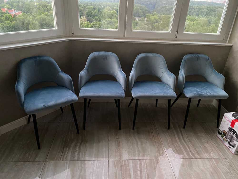 Красивые стулья, удобные, приятный цвет Собрали легко и быстро, достаточно просто прикрутить 4 ножки, стул удобный, сидеть на нем комфортно, не сильно мягкий, из минусов запах, который выветрился (возможно пока ещё не до конца) и следы грязных пальцев, наверное, тех, кто занимался упаковкой стульев) Каждый стул пришёл в коробке, все целое)