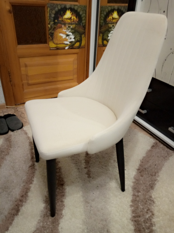 Красивые стулья, приходят в коробках в разобранном виде, но собрать раз плюнуть. Цвет шикарный. Близко к столу приставлять нельзя, как видно на фотографии остаются следы, и уже никуда не уходят. Если имеются домашние животные, в особенности касается кошек, то шерсть остаётся знатная, после лежания на них питомца, но в то же время очень легко убирается, просто рукой. К покупке рекомендую.