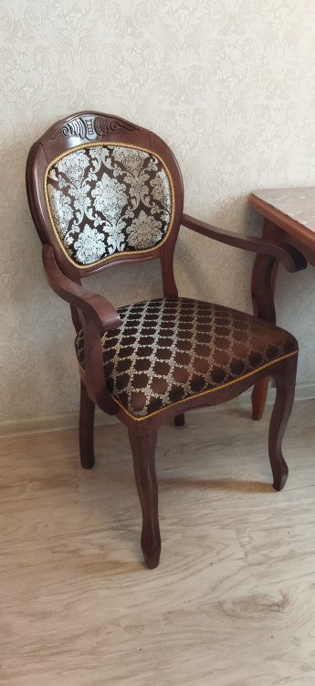 Стулья красивые. Однако после годового использования обивка спинки отклеивается, виден паралон, ткань просто приклеена. Под ней нет ничего-дыра!. Теперь нужно искать мастера. чтобы фанерку набил и обтянул тканью. Эйфория прошла! осталась проблема из-за халтуры. Прижиматься к спинке нельзя!!! Может у вас есть мастера, подскажите как с ними связаться. 8 9151295025 мой телефон Нат. Андр.