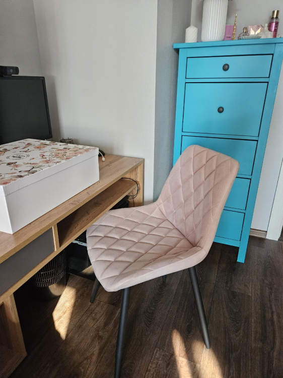 Долго искала и в магазине, и онлайн. Увидела это чудо, заказала один стул на «посмотреть» и ничуть не разочарована. Крепкий, мягкий, удобный, не громоздкий, на ножках пластиковые накладки-по полу не скрипит при перемещении. Цвет и дизайн это прям то что я искала. Заказала еще 3.; Достоинства: Замечательный стул