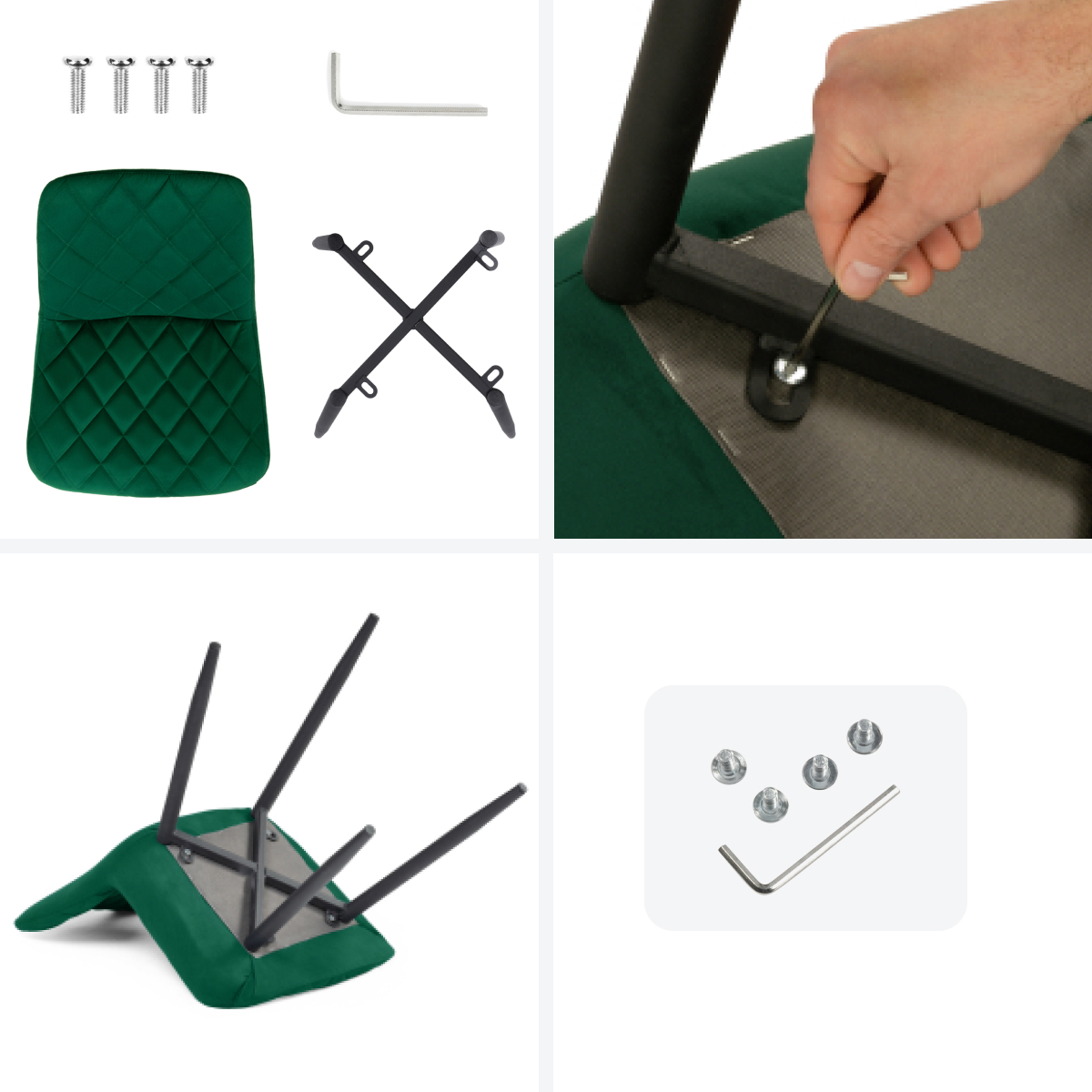 1. Выложите все содержимое коробки: 4 винта, сидушка, каркас, 1 шестигранник.