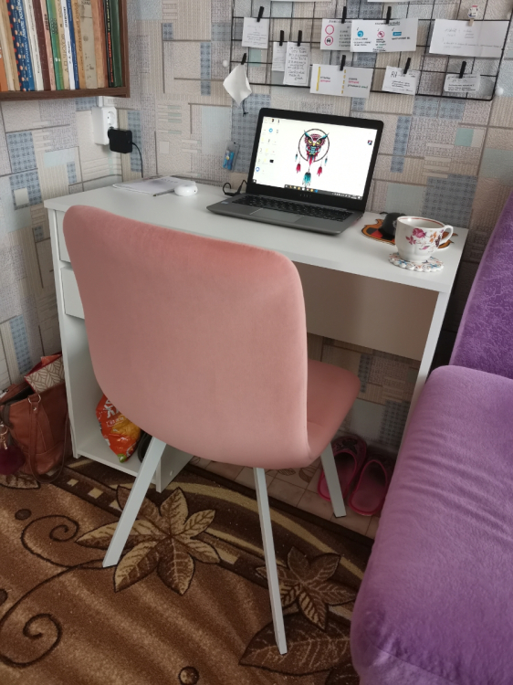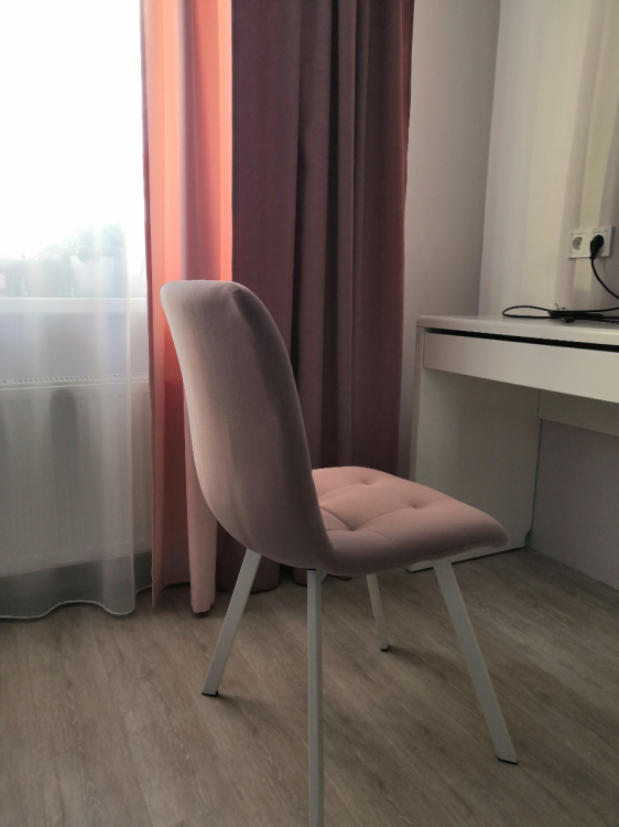 Приятный цвет, мягкий, лёгкий в сборке Отличный устойчивый комфортный стул. Приятный цвет, идеален к белому столу) Собрать легко, ткань приятная на ощупь и стул довольно мягкий. Возможно, поролон внутри быстро сдавится, но, будем надеяться хотя бы пару лет форму подержит) при сборке немного криво прикручивается одна ножка, в результате стул чуть качает, но не критично