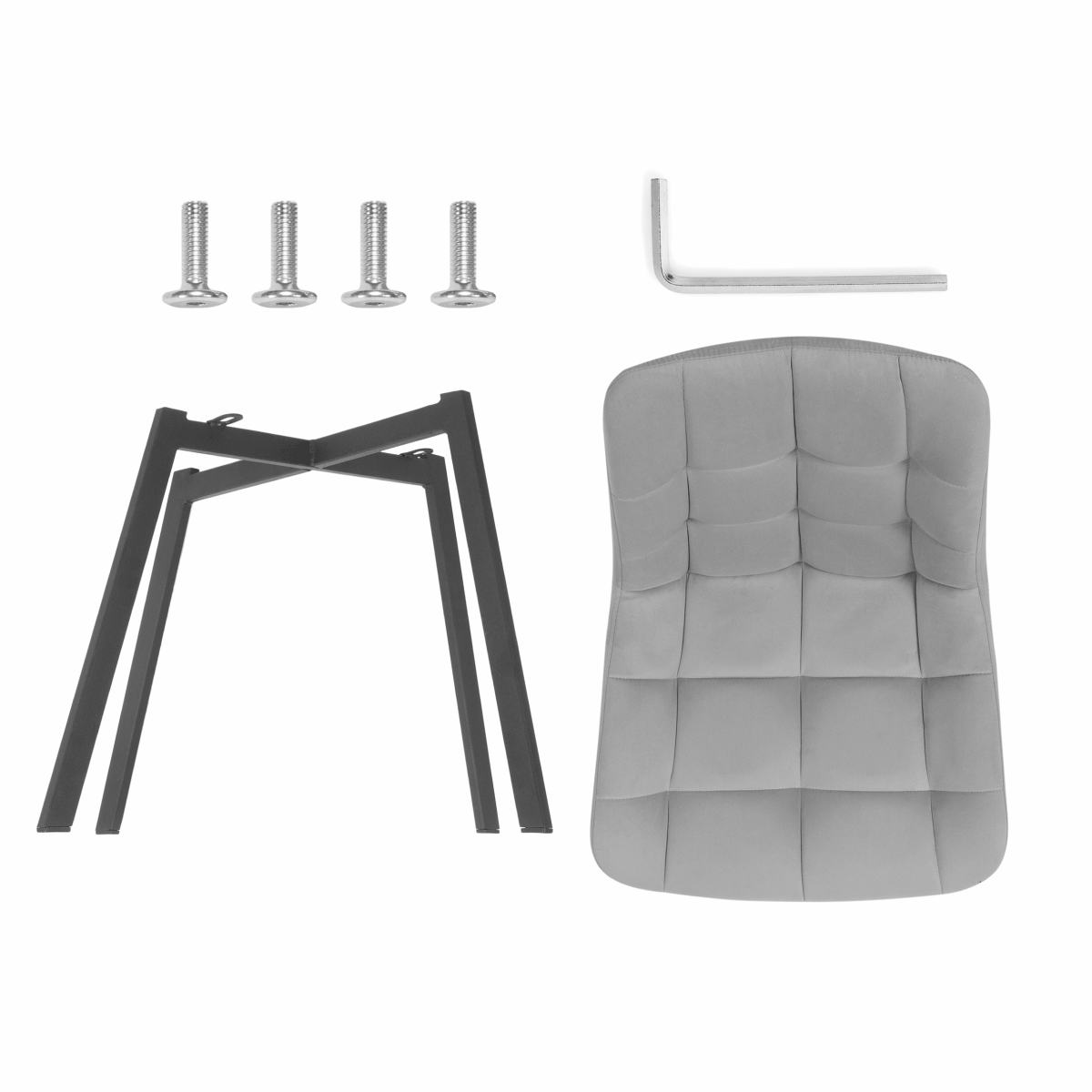 1. Выложите все содержимое коробки: 4 винта, сидушка, каркас, 1 шестигранник.