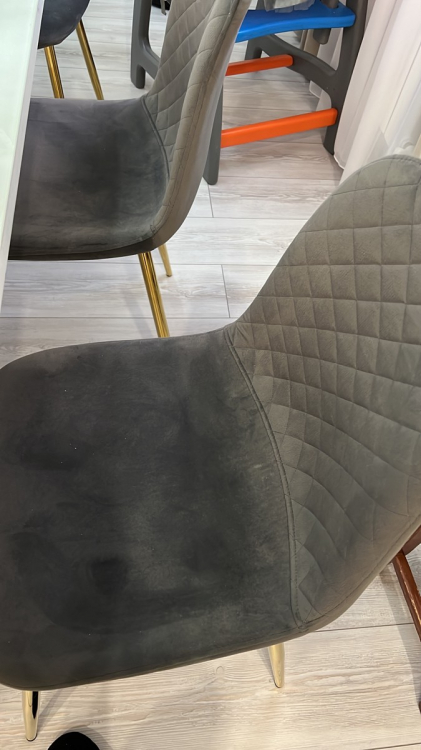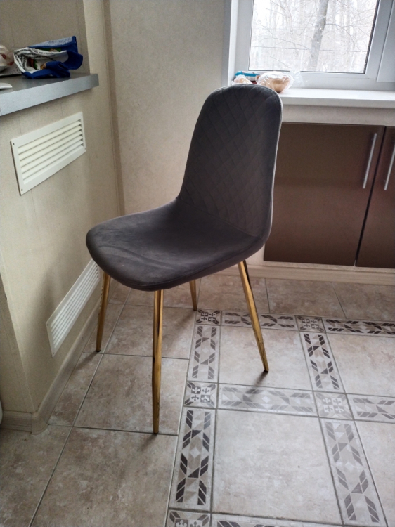 Стулья прекрасные, стильные, выглядят явно дороже своей цены. Очень быстро собрали. Пришли каждый в отдельной коробке, все качественно упаковано! У нас дети и стулья приходится мыть часто, но за счет цвета и качества ткани моются они легко обычной влажной губкой. Я бы купила еще парочку, но цена поднялась. Буду ждать акцию. А пока любуемся этими); Достоинства: Стиль. Удобство в сборке. Качество. Легко моется. Практичный!; Недостатки: Есть небольшой разрез на сиденье.