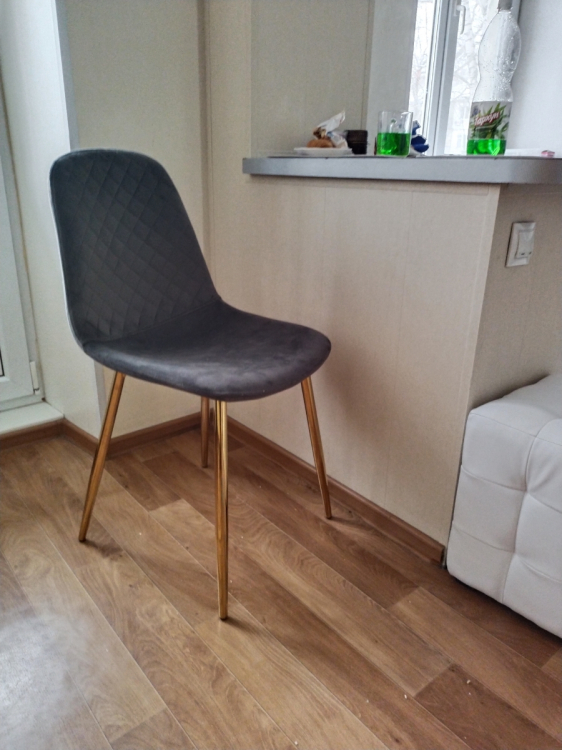 Стулья прекрасные, стильные, выглядят явно дороже своей цены. Очень быстро собрали. Пришли каждый в отдельной коробке, все качественно упаковано! У нас дети и стулья приходится мыть часто, но за счет цвета и качества ткани моются они легко обычной влажной губкой. Я бы купила еще парочку, но цена поднялась. Буду ждать акцию. А пока любуемся этими); Достоинства: Стиль. Удобство в сборке. Качество. Легко моется. Практичный!; Недостатки: Есть небольшой разрез на сиденье.