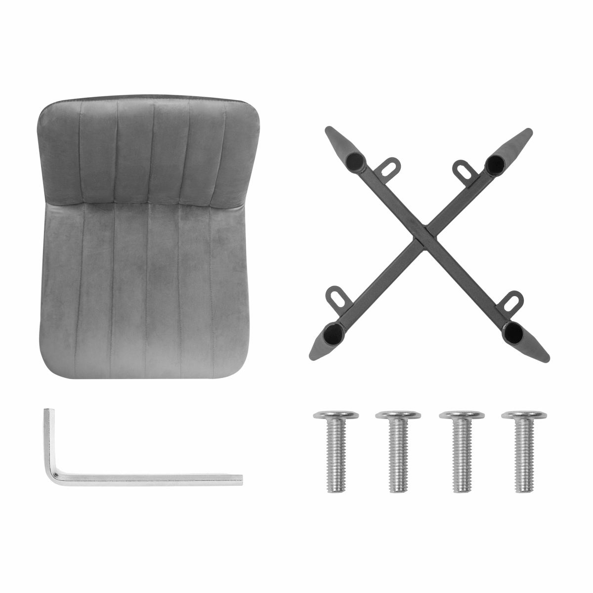 1. Выложите все содержимое коробки: 4 винта, сидушка, каркас, 1 шестигранник.