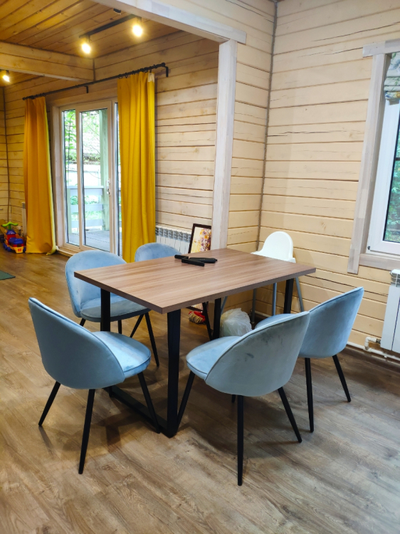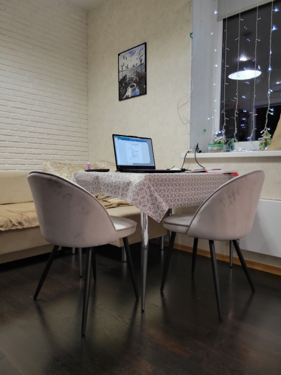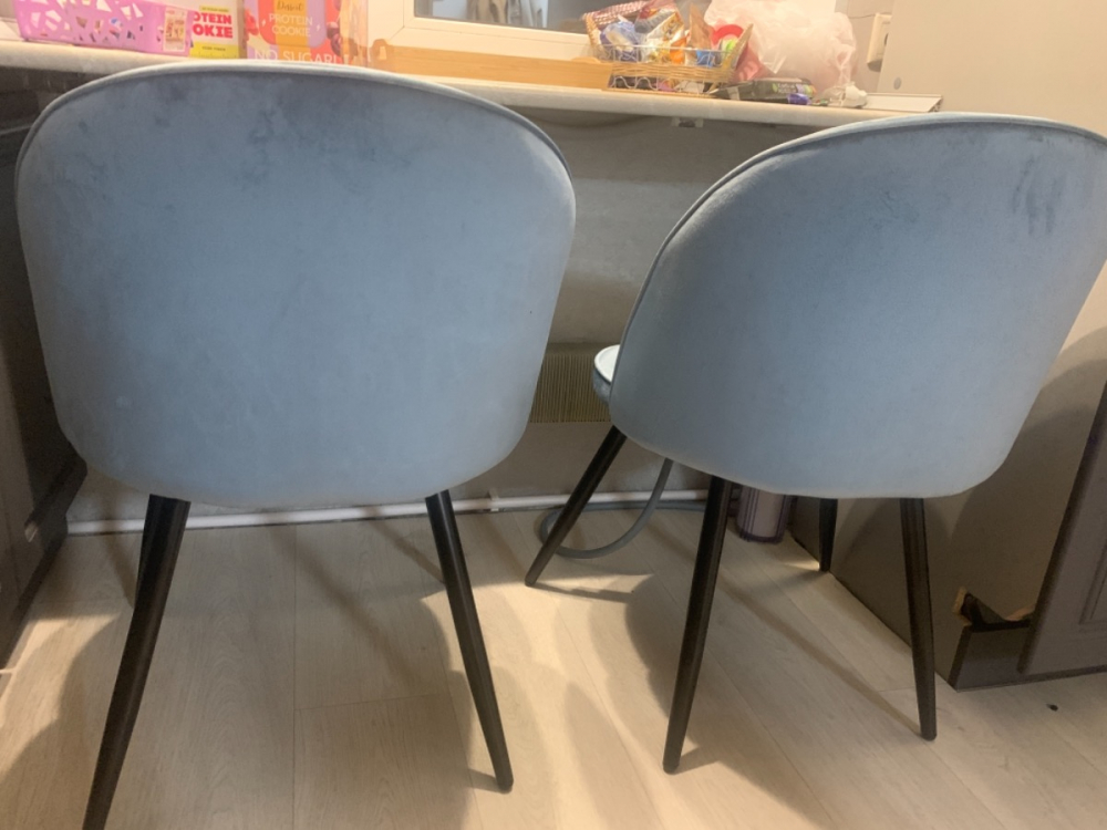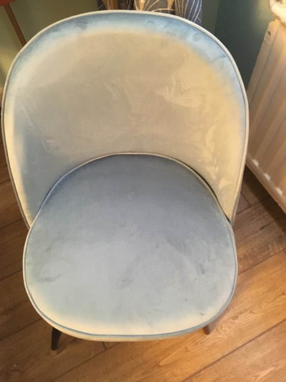 В небольших местах имеются потертости (причём как на 1 стуле, так и на 2 (я заказывала сразу два)). Все шероховатости, лежащий в разные стороны ворс будет виден, а особенно на солнечной стороне, так как ткань блестит, можно сказать, что глянцевый велюр (относительно того, что бывают ещё стулья как матовый велюр. Заказывала в этой же фирме себе в спальню матовый, он мне понравился больше. Но эти два стула для кухни пойдут; Достоинства: В целом неплохой стул; Недостатки: Потертости