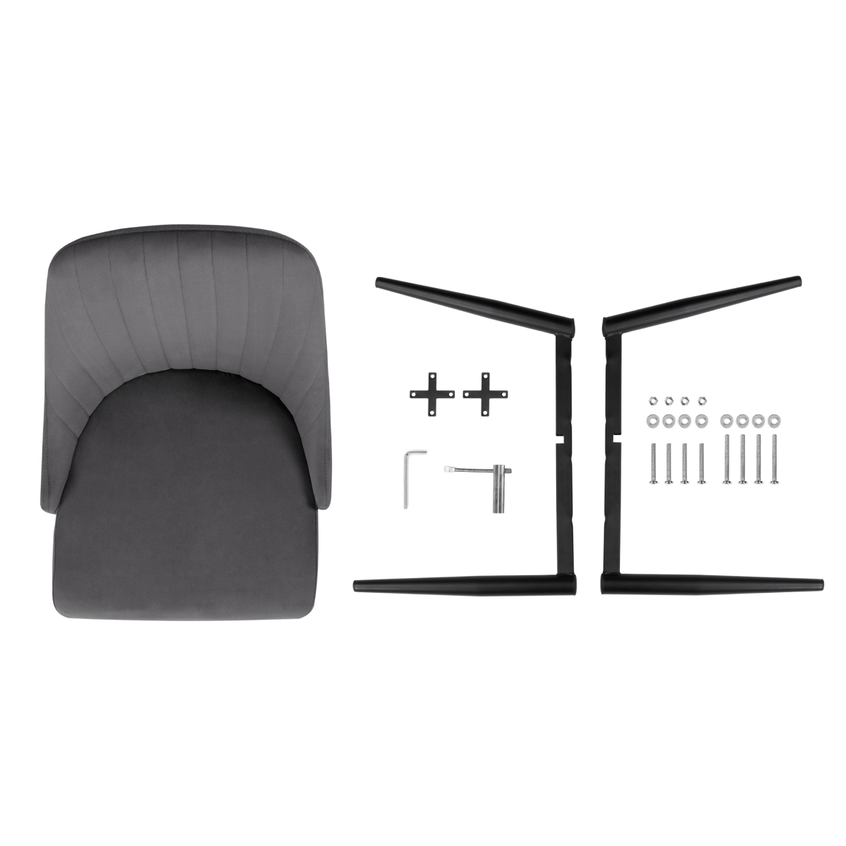 1. Выложите все из коробки: сиденье, 2 ножки, доп. крестовина, фурнитура и 1 шестигранник.