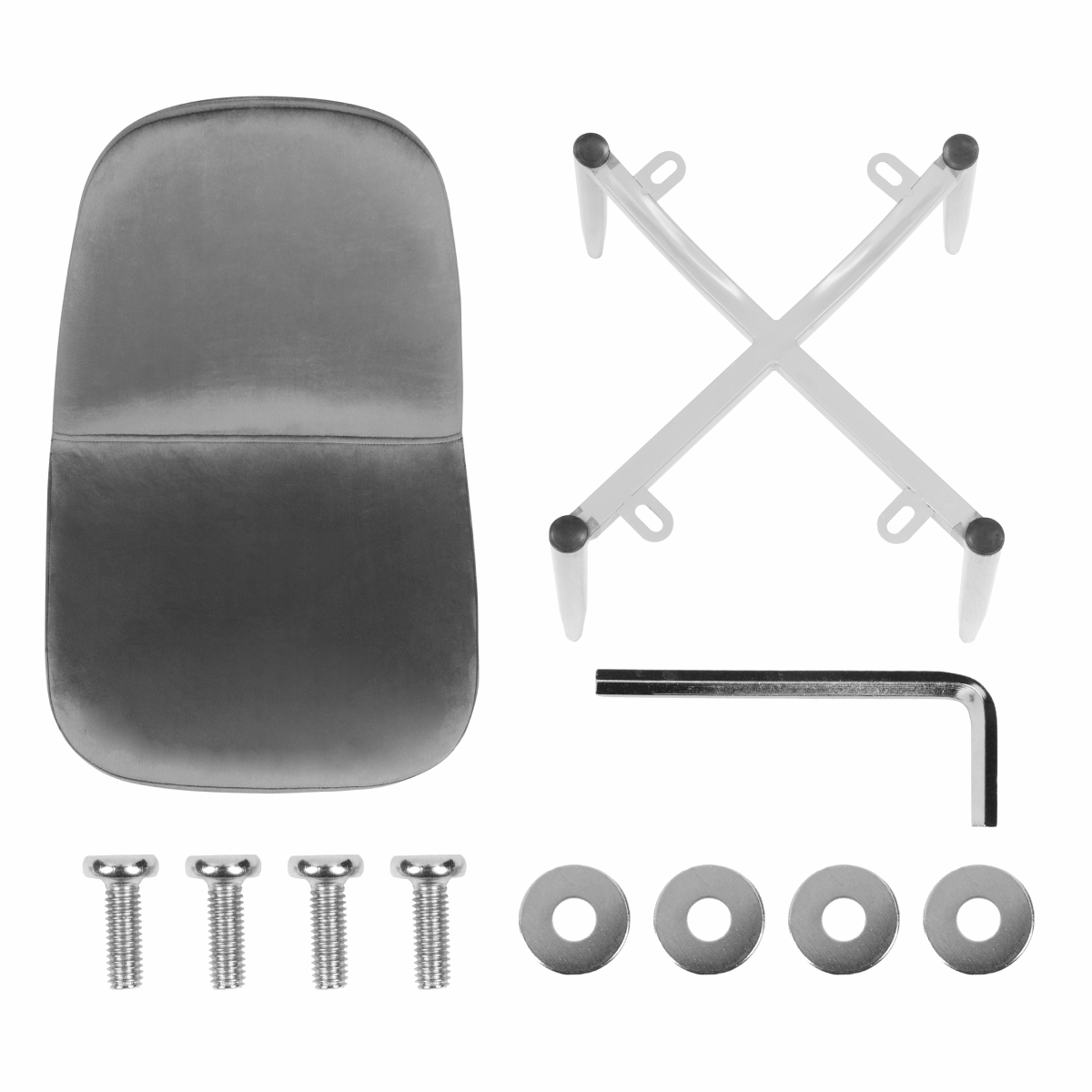 1. Выложите все содержимое коробки: фурнитура, сидушка, каркас, 1 шестигранник.
