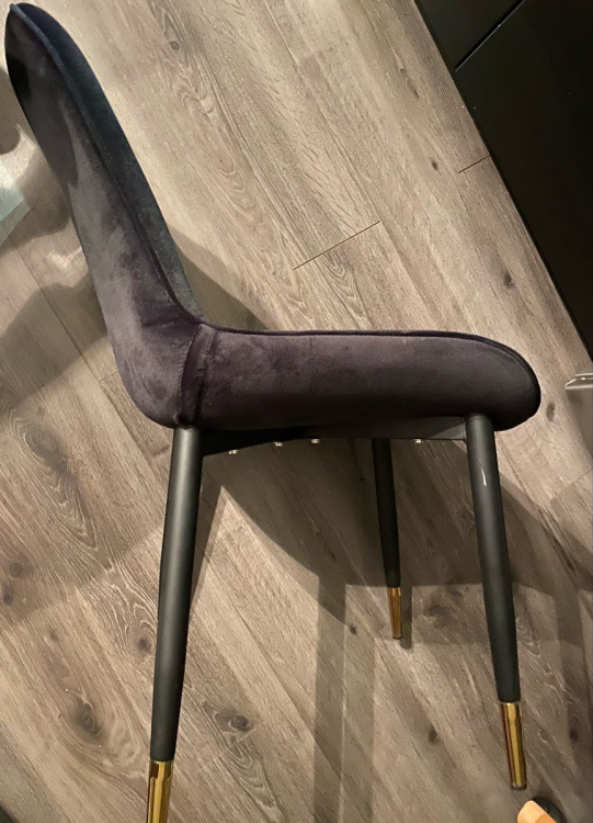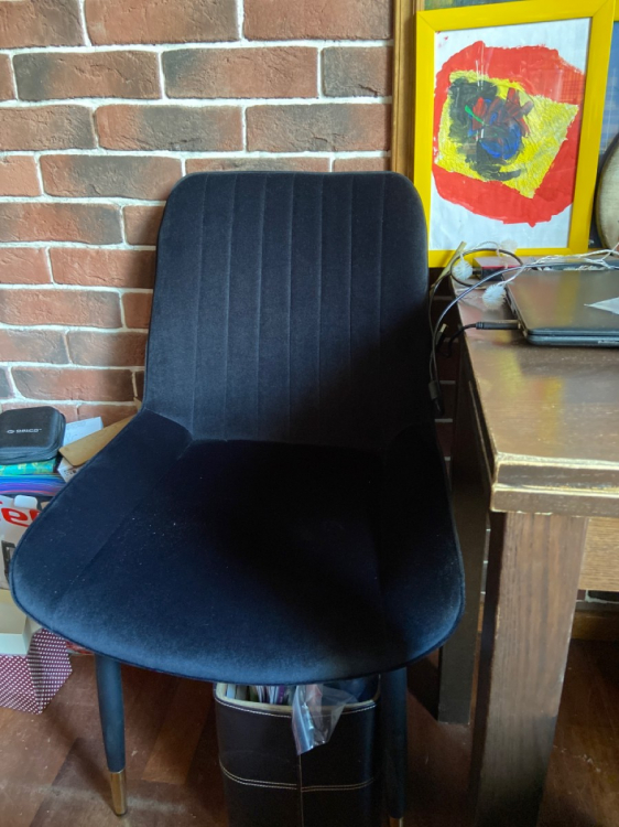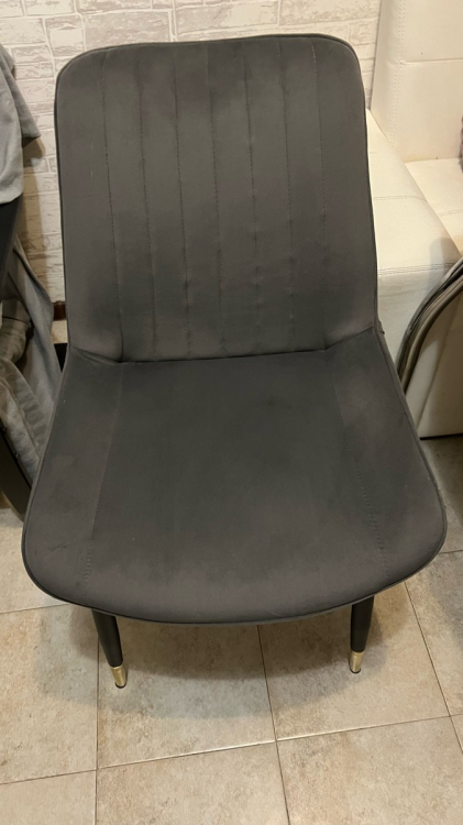 Стулья хорошие! Большой плюс металлические ножки и каркас! На вид очень надежные! Искала именно такие. Чисто чёрный велюр. Камера свет искажает, сделаны качественно, никаких кривых швов или ниток. Пришёл полный комплект в одной коробке.; Достоинства: Цена/качество; Недостатки: Пока не нашла
