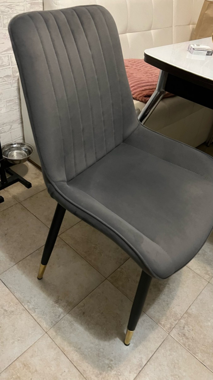 Стулья хорошие! Большой плюс металлические ножки и каркас! На вид очень надежные! Искала именно такие. Чисто чёрный велюр. Камера свет искажает, сделаны качественно, никаких кривых швов или ниток. Пришёл полный комплект в одной коробке.; Достоинства: Цена/качество; Недостатки: Пока не нашла