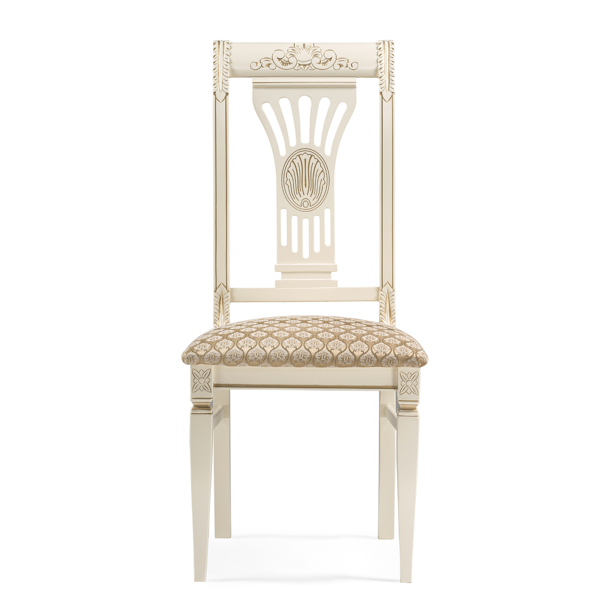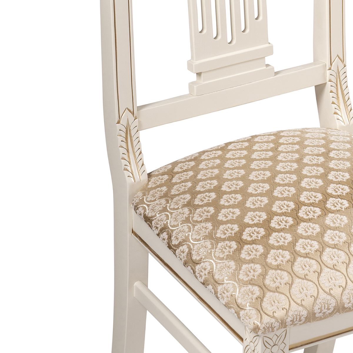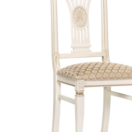 Спинка и ножки изготовлены из натурального экологичного материала - массива бука, покрытого белой эмалью с золотой патиной.