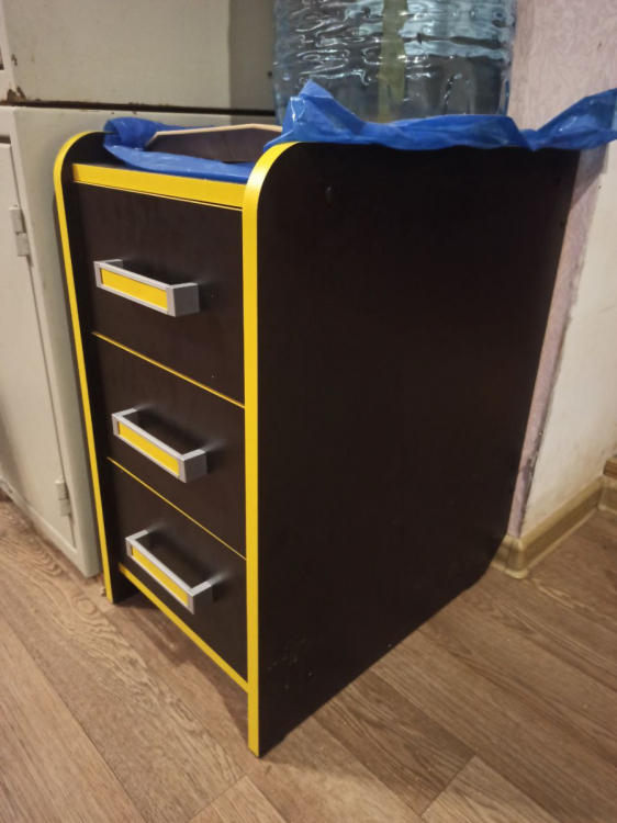 На видео можно увидеть на ней бутыль в 20 литров. Верхняя часть тумбы под ней не прогибается, что может сказать о качестве материалов.; Достоинства: Хорошая тумбочка. Сделана качественно. В сборке простая. Конструкция крепкая. Ящики выезжают и заезжают легко.; Недостатки: Не обнаружил