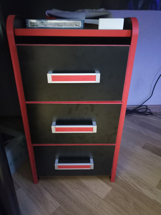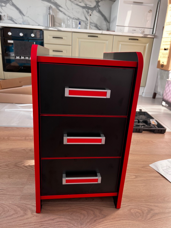Тумбочка не плохая, добротная. Подбирали к столу. Пришла хорошо упакованая, всё на месте, без повреждений. При сборке проблем не было, только по направляющие не было меток на ящиках. Ставите их в самый низ.; Достоинства: Нормальная тумбочка; Недостатки: Очень заметны следы от рук