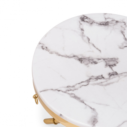 Каркас с декоративными деталями изготовлен из высокопрочного металла в золотистом цвете.