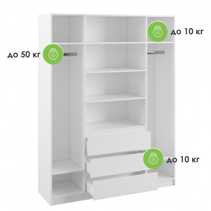 Глубина шкафа: 50 см.Глубина шкафа с учетом толщины фасадов: 52 см.