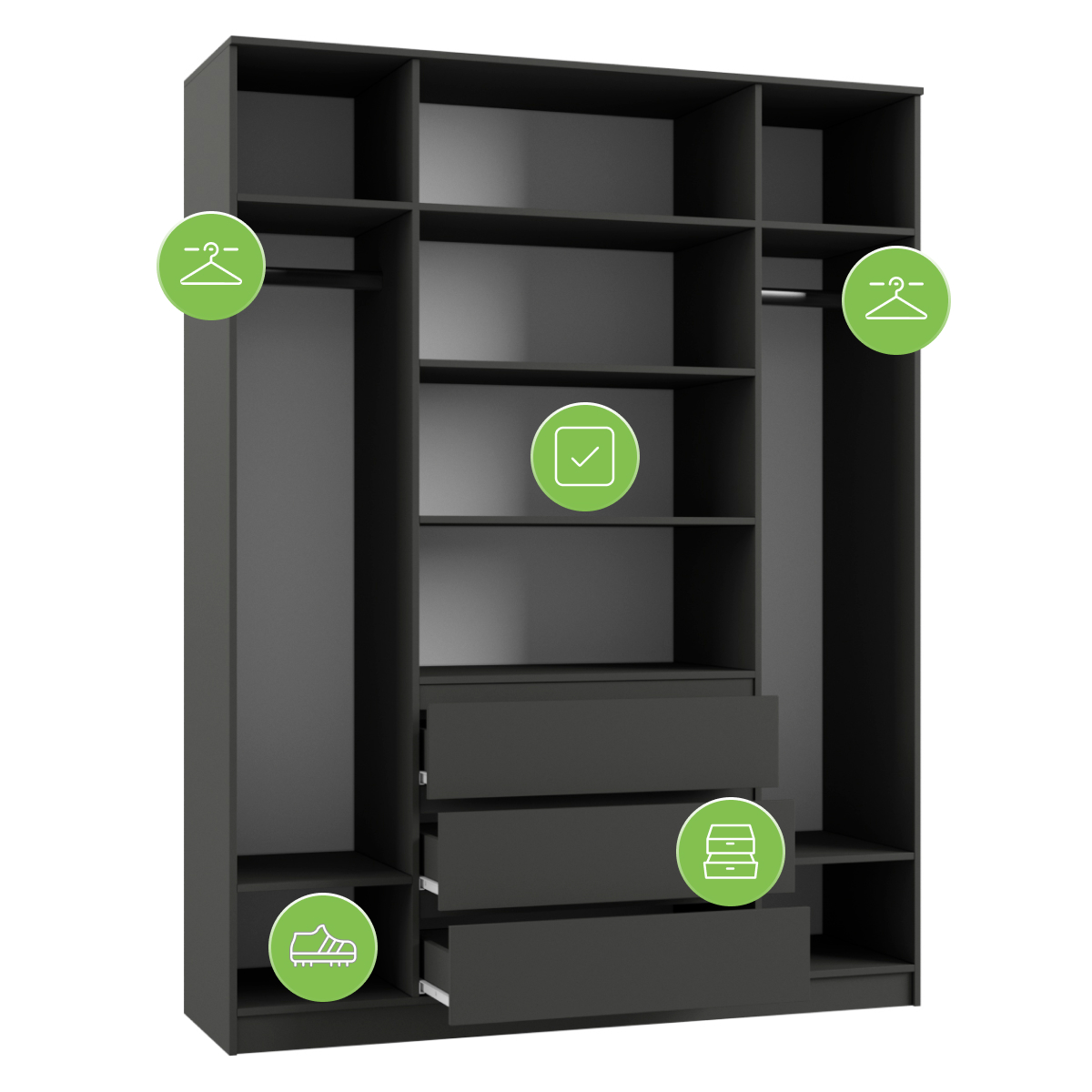 Качественный, вместительный шкаф. Удобный. Отлично вписался в проем. Быстрая сборка. Рекомендую