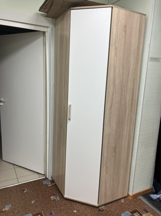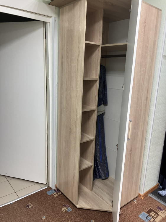 Полностью облагороженное ЛДВП.Прочные 4-х шарнирные петли для надежной фиксации элементов мебели.Элегантные ручки из бронзового пластика с мозаичным покрытием.Угловой шкаф универсальной сборки на обе стороны.
