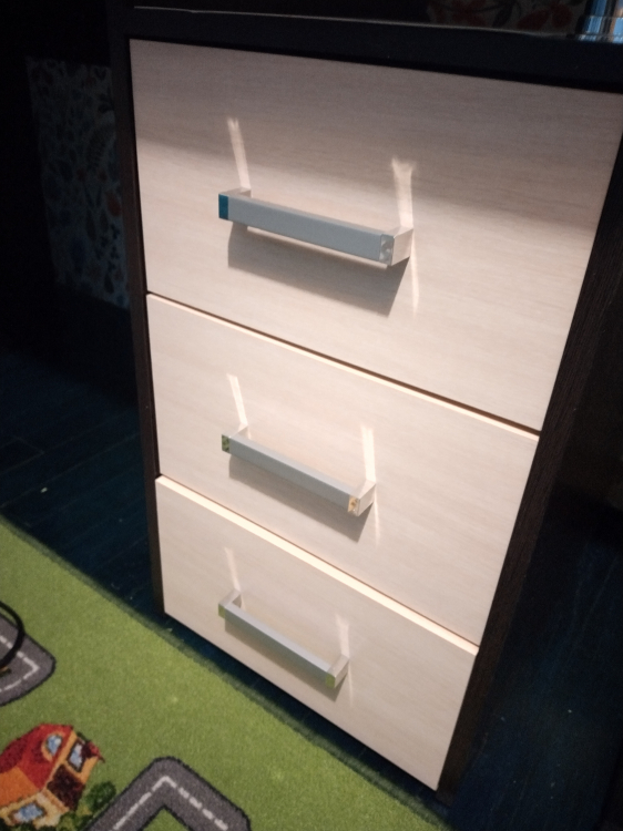 Общий вид не плох. Из самого положительного это действительно просторный стол и приятные цвета. Качество не очень, хватит на один раз разобрать и по итогу 2 раза собрать - дальше рассыпется. Приехал комплект весь полностью в стружке, каждая деталь с двух сторон. Хромают очень сильно ящики и выездные детали, нужно тянуть со скрипом, хотя муж идеально собирает мебель и все эти моменты максимально идеально корректирует, но в данном случае колеса плавно не ездят, хоть ты тресни в щепки. Надеюсь, что прослужит)