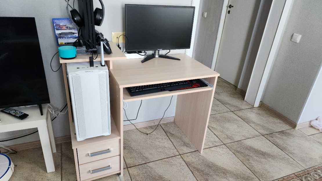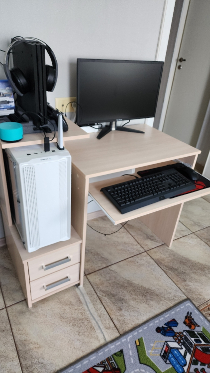 Стол компактный, удобный, ребенку за ним сидеть комфортно. Удобное место для системного блока (не мешается под ногами). Единственное, пришлось по другому прикрутить верхнюю полку. Но это только потому, что монитор большой и не вмещался(ширина монитора 70 см.) Для обычного монитора места вполне хватает. Доставка быстрая, занесли в квартиру. В сборке тоже проблем особых не было, хотя инструкция для новичков в сборке не особо понятна будет. В общем покупкой доволен!; Достоинства: Компактный, удобный.; Недостатки: Нет