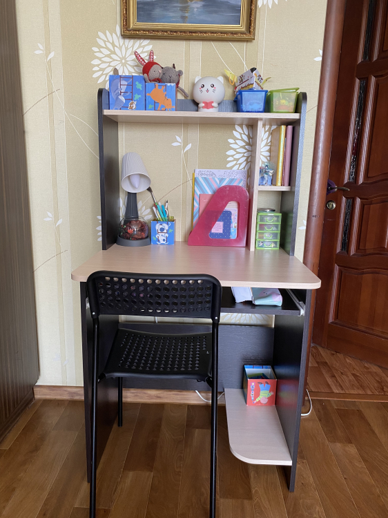 Стол собирается легко, компактный, удобный за счёт сочетания тёмного и светлого цветов в интерьере смотрится очень интересно.