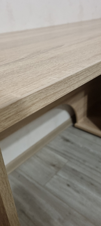 Стол, сполне себе хорош за свои деньги. Из плюсов хорошая кромка и цвет столешницы. Высота 75 см. Из минусов стоит отметить направляющие и то, что ящики фиксируются лишь одним винтом с каждой стороны, много не положишь в такой ящик развалится. Стоит так же отметить, что для открытия ящиков, придется отъезжать от стола, фасады ящиков не скромлены, острые.; Достоинства: цвет; Недостатки: качество направляющих в ящиках