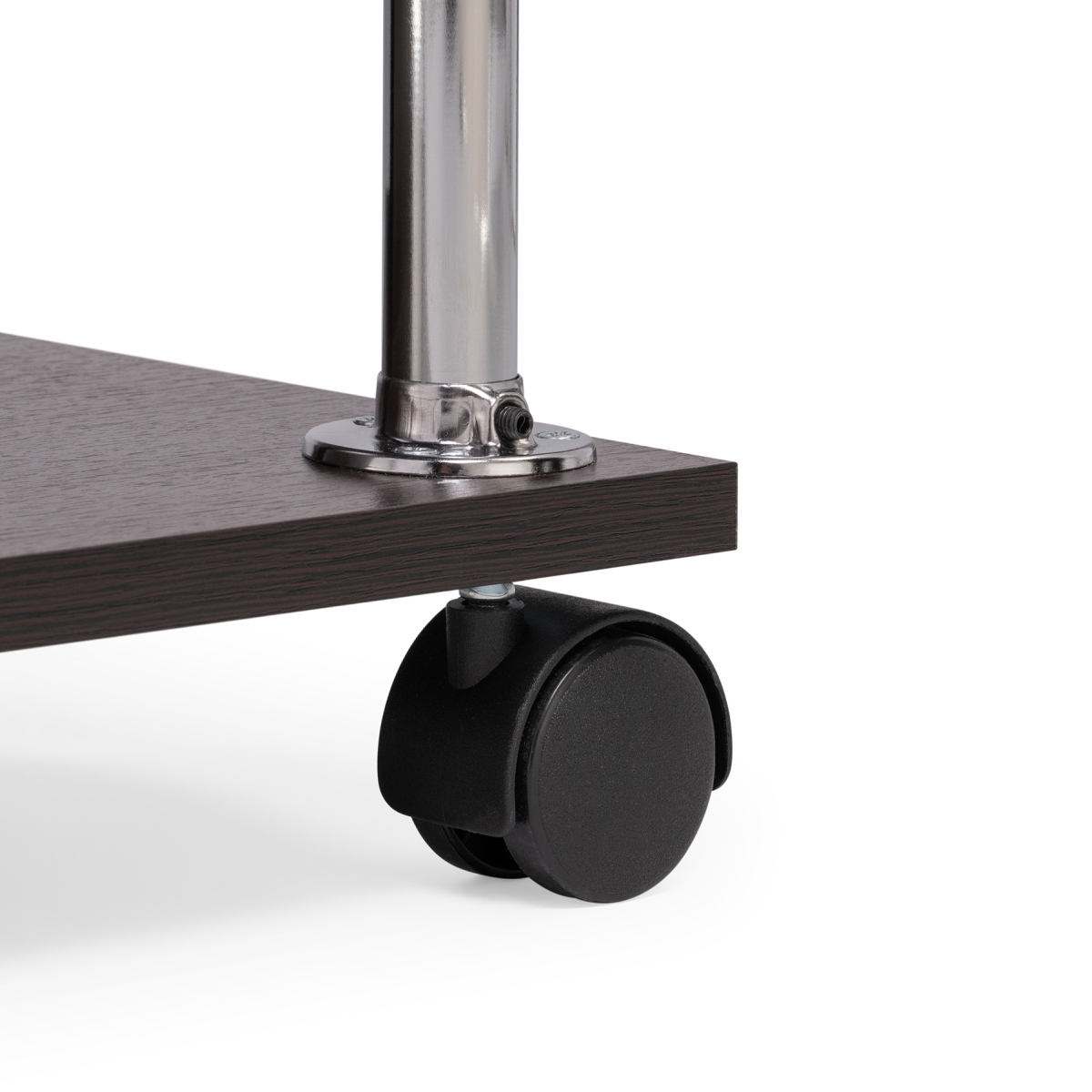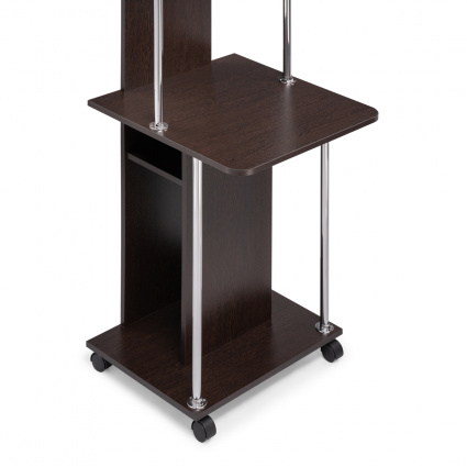 Стол очень нравится, долго выбирала, рассматривала варианты, т.к. у нас студия основные критерии - компактность и мобильность. Стол идеально вписался в интерьер, белый, стильный, места занимает очень мало, колёсики надёжные и подвижные. Был хорошо упакован, понятная инструкция, собирала сама, впервый раз. Доставлен без сколов, гладкая, приятная поверхность. высота верхней полки 30 см . идеально подойдет для монитора, сетевого блока, и принтера, у нас стоит ноут и колонка. Единственный минус - пришлось отрезать 1 см от нижних металлических опор, т.к столешницу невозможно было установить. но это не сложно. Из-за этого поставила 4 звезды вообщем стол советую, классный , удобный; Достоинства: стильный, компактный, мобильный,удобный; Недостатки: нижние металические опоры пришлось отрезать, т.к. они были на 1 см длиннее чем необходимо. но это не сложно и на качество ни как не повлияло