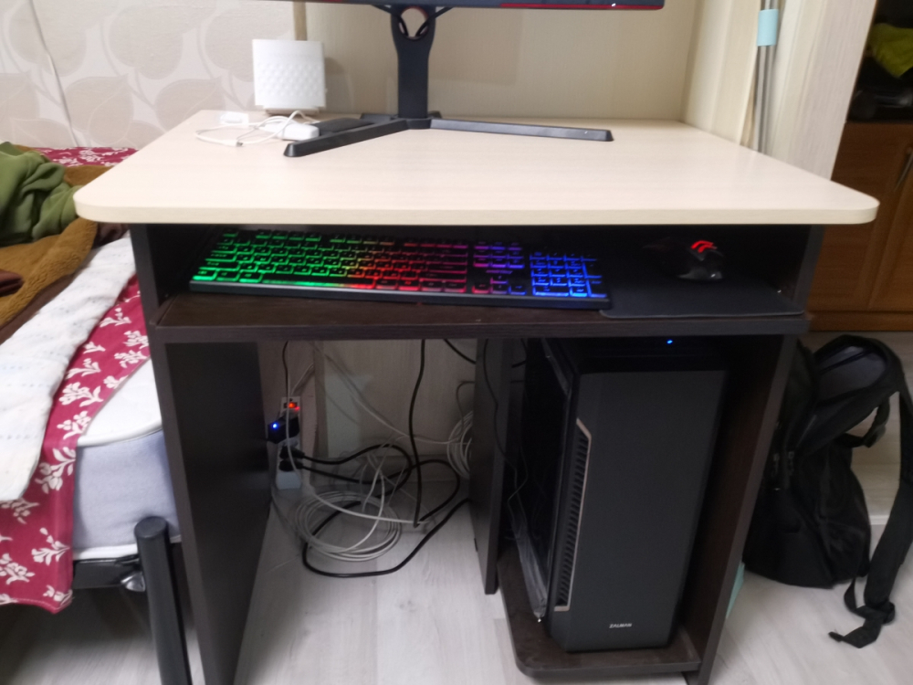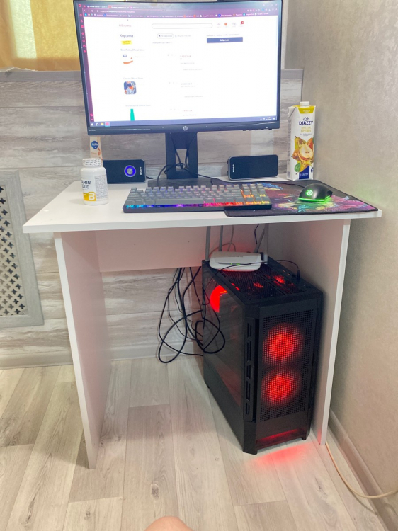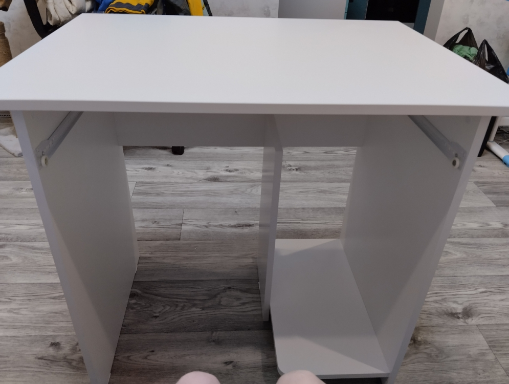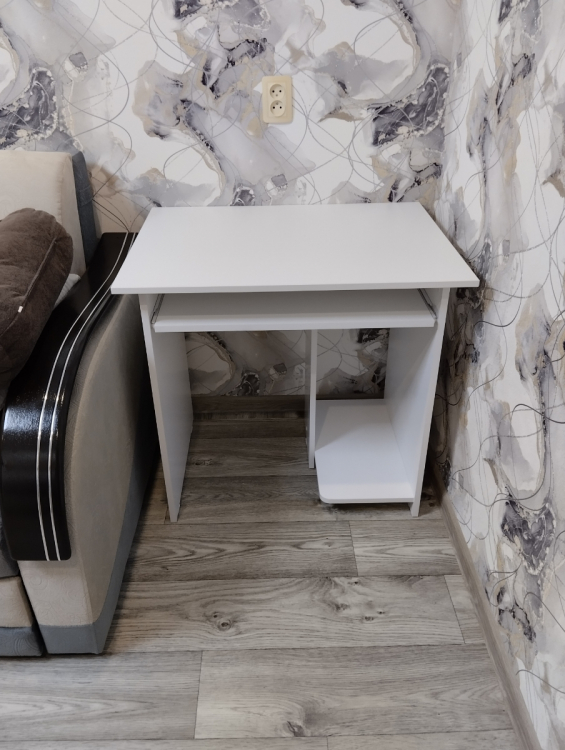 Долго сказала стол для пк, чтобы ширина стола была уже, чем сама столешница. (Кто понял, тот понял). Это супер классный, удобный стол. Места много! Цвет идеально белый. В сборке очень простой. Пришли все детали абсолютно, но мы не собирали нижнюю полочку для СБ, посчитали не нужным. Думала, что будет немного низкий стол, но нет, стол достаточно удобный по высоте!Заказала с доставкой курьером, спасибо, что упаковали хорошо, довезли в целости и сохранности. Спасибо.; Достоинства: Широкая столешница, все детали в комплекте, чистый белый цвет.