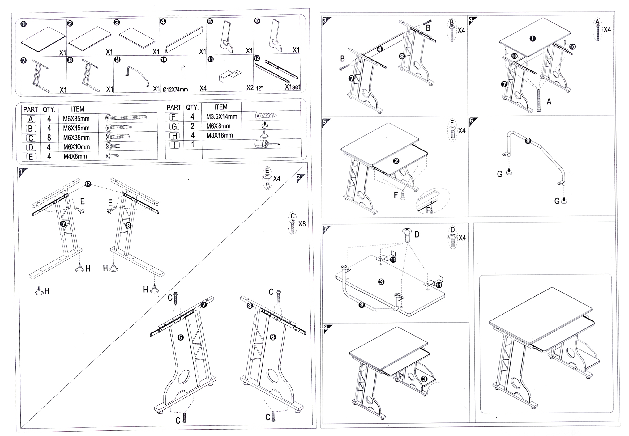 Столешница (ДхШ): 78 х 50 см.Полка под клавиатуру (ДхШхВ): 63 х 30 х 68 см.