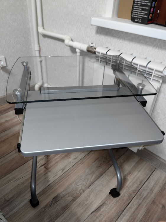 Достоинства: Отличный маленький столик,мы брали для ноутбука Высота столика 60 см,низковатый для взрослых,порадовала бесплатная доставка курьером до квартиры ,собрали без особых трудностей,в общем покупкой довольны; Недостатки: Цена(считаю дорого ) Клавиатура не входит в выдвижную полку,столик узкий,это имейте ввиду