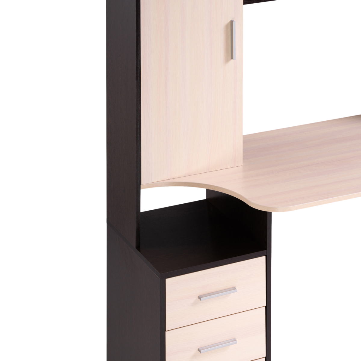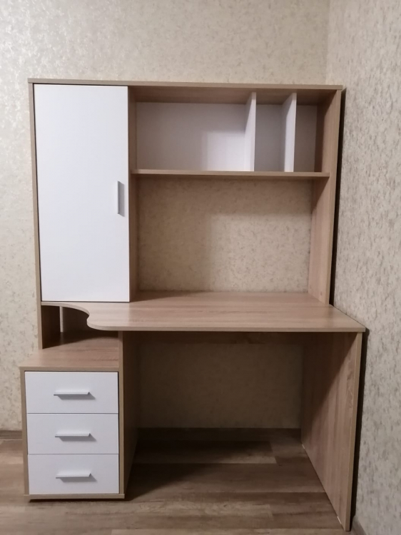 Хорошее изделие, функциональное и красивое. Кроме нашей расцветки есть и просто вся светлая, то есть на любой вкус. Со сборкой проблем не возникло: везде намечены отверстия для саморезов, все совпали.; Достоинства: Хорошая цена, дешевле аналогов, понятная инструкция по сборке, светлая столешница! Лучше смотрится, чем темная: у сына аналогичная гамма у стола, только столешница темная, так у него похуже сидеть. А, еще хорошие шарниры на выдвижных ящиках, не самые дешевые и ломающиеся, а на подшипниках и выдвигаются полностью.; Недостатки: Долгая доставка, но оно того стоило! Все привезли в целости.