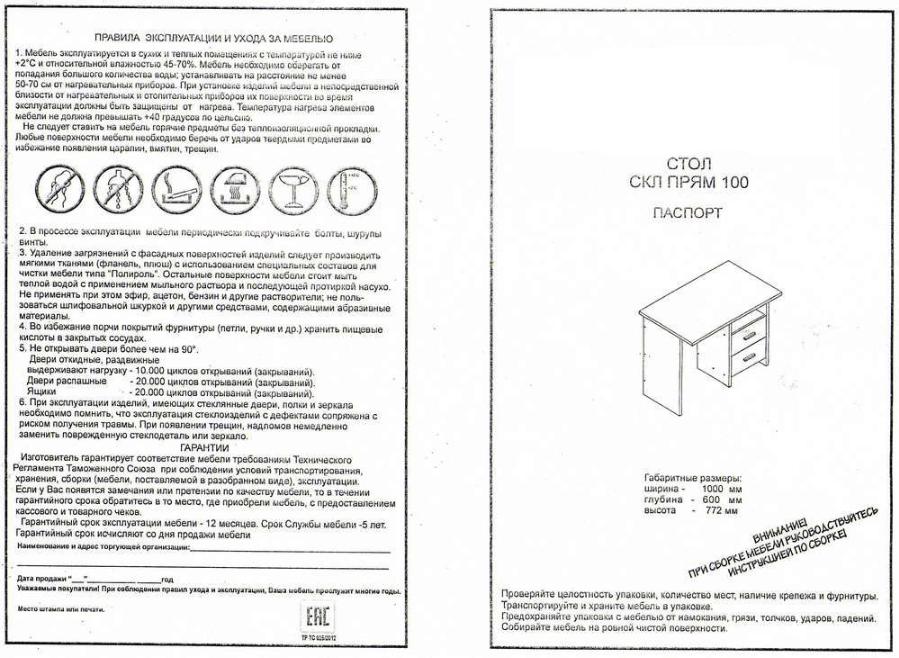 Толщина столешницы: 2,5 см