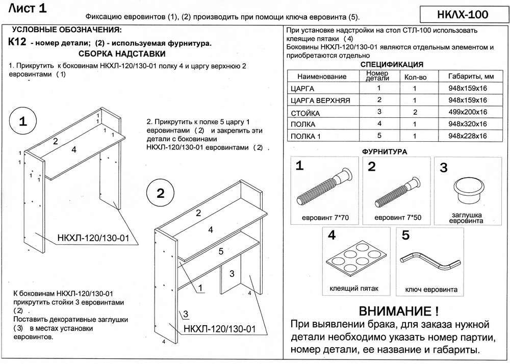 Размеры стола