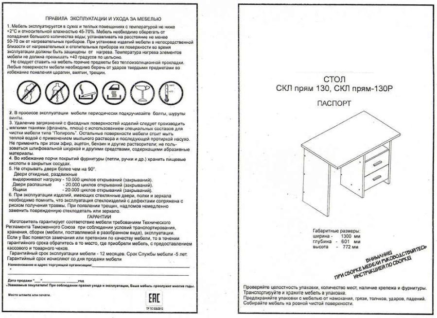 Высота столешницы: 77,2 см