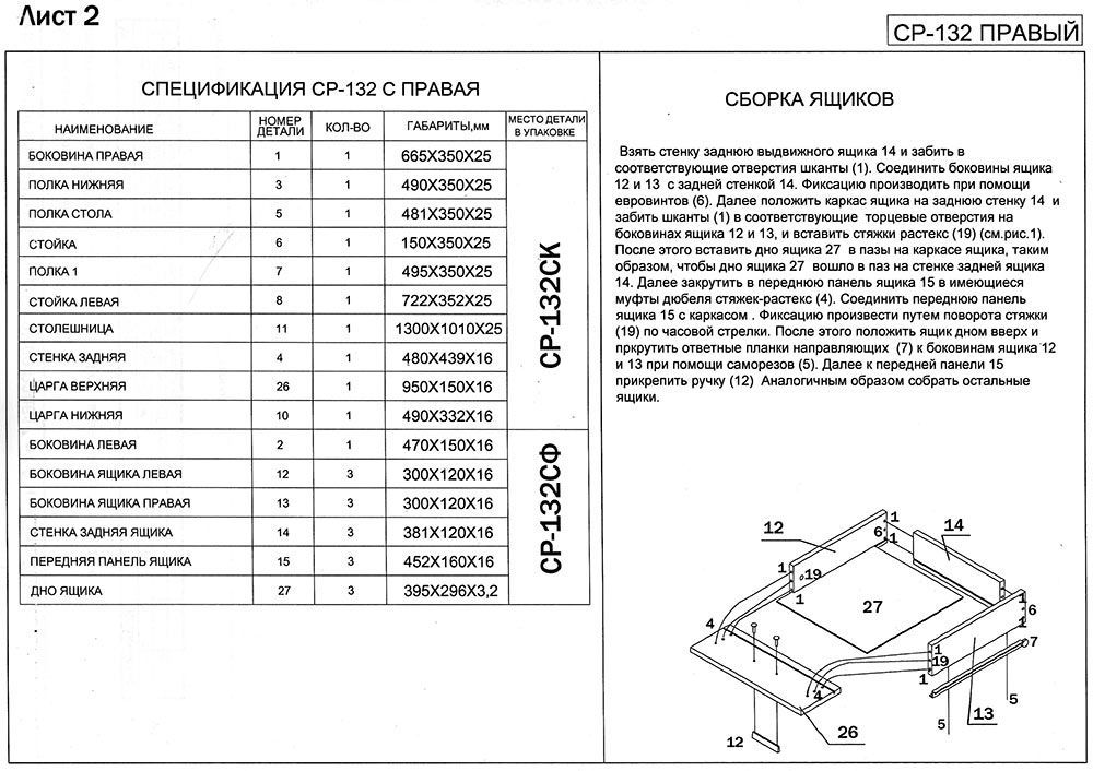 Используется плита ДСП толщиной 25 мм.Схема сборки