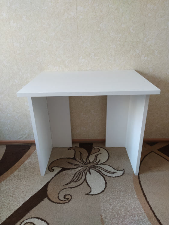 Этот небольшой столик я купила для работы на дому. На столешницей хватает места для компьютера, и под ногами свободно. В белом цвете стол выглядит очень стильно!)