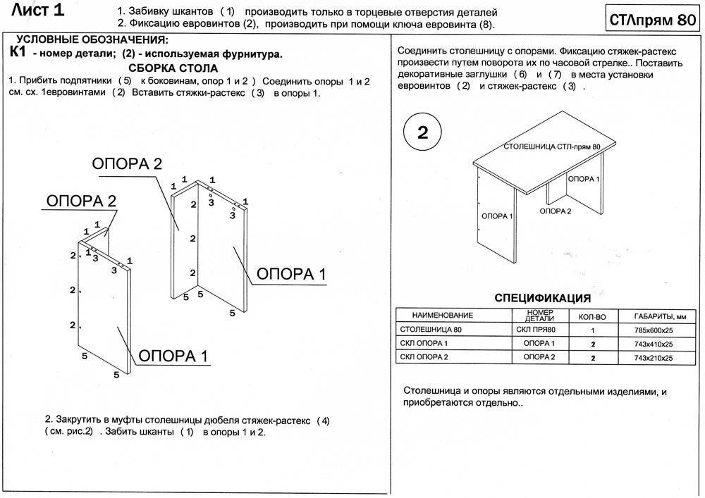 Опоры у столов универсальные, при сборке допустимо отсутствие кромки с одной стороны.