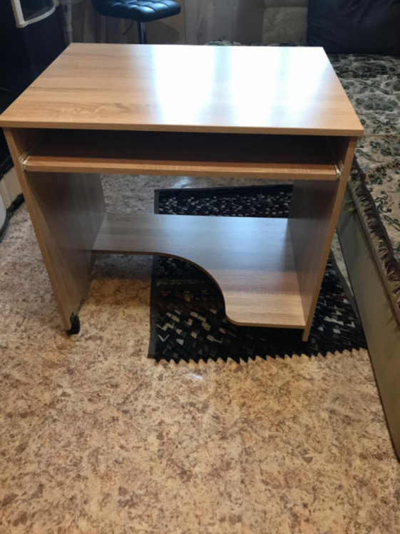 стол хороший, высокий, очень удобный, есть место куда и шаверму положить и фильтр для воды и сигареты, да хоть кота клади в положении лёжа - всё поместится! - безусловно плюсы но конструкцию всё-таки хотелось бы попрочней. если дёрнуть - так сразу шатается... ну, а так - отличный стол
