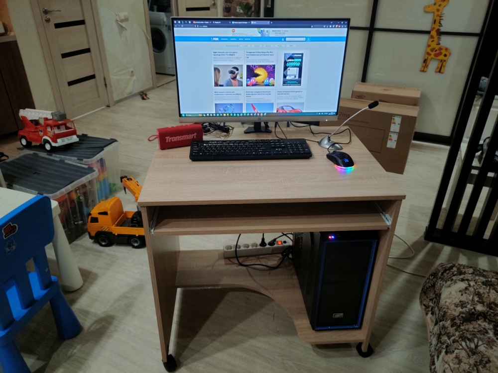 Стол классный, но сложно было установить выдвижную клавиатуру, т.к. производитель предлагает самим покупателям мерить и сверлить отверстия. Понятно что не Икея. В итоге собрал стол без выдвижных частей и всё нормально.