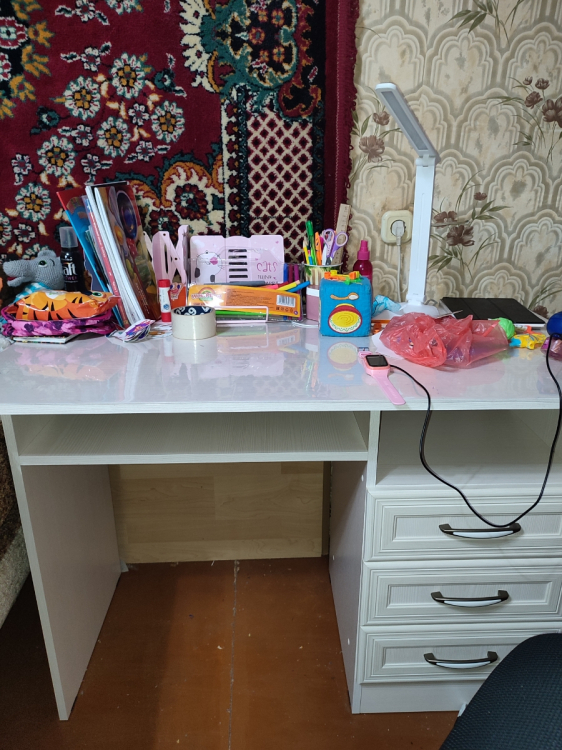 Стол сам неплохой. В целом мне понравился, но сняла звезду за то, что нет разметок на ящиках.Из-за этого пришлось возиться более 2,5 часов с ними. Извините, но столько потратить времени на прикручивание направляющих к ящикам, это немыслимость. Неоднократно здесь уже писали об этом, но производили не приняли меры.Честно, за это хотелось снять две звезды, но всё же хочется верить, что это исправят для других, поэтому минус одна. Есть еще один минус, о нем здесь тоже писали, ящики с одной стороны примыкают, с другой нет. Видно на фото. Ну и что вызвало у меня Почему пожалели лишние 10 см двп Задняя стенка за ящиками почему-то не до конца, странно. А так в принципе, стол советую. Но сверху нужно сразу стелить гибкое стекло, так как быстро поцарапается . Цена-качество. И все же, обратите внимание на то, что не все умеют без разметок собирать ящики и не всем это даётся легко. Раз уж сделали разметку на столе, за это спасибо, то делайте и на ящиках, все же для сборщиков это намного проще, чем для тех, кто с этим практически не сталкивается в жизни. А так сколов нет, курьер нёс на руках и не волок его, хоть и коробка тяжелая. Всё целое при распаковке, все детали на месте.; Недостатки: Нет разметки на ящиках