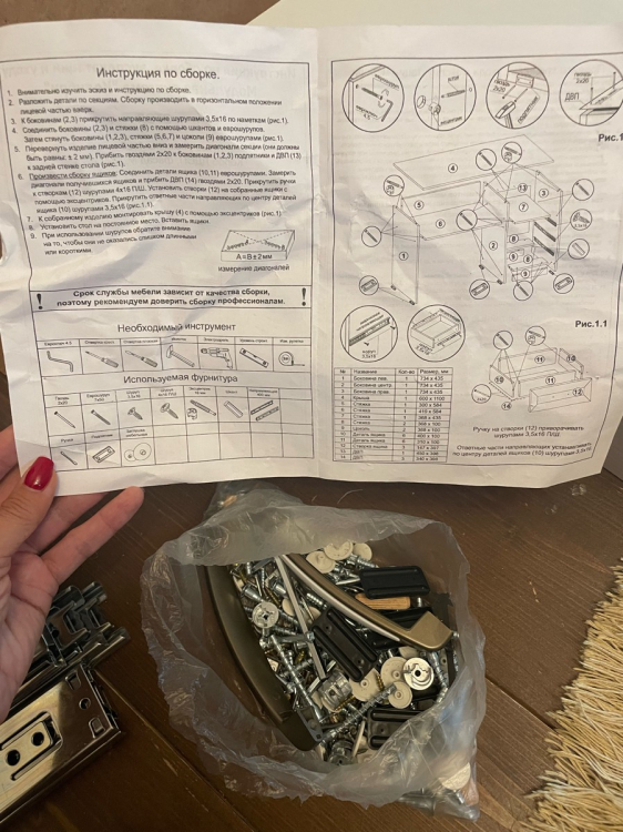 Курьер заранее позвонил,занес в квартиру и поставил куда мне надо было. Хоть стол и тяжелый,но он нес его в руках,по полу не таскал! Я так боялась что будут углы оббиты,но все хорошо Стол я почти весь собрала сама☺️ Только ящики и направляющие собирал мужчина. Сам стол удобный,ящики вместительные ; Достоинства: Хороший,добротный стол!; Недостатки: Присборке кое где, сыпался,но не критично.