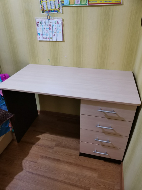 схемой сборки полной произодитель не проследил укомплектовать,долго собирается,сколы ввину доставщикам; Достоинства: широкая столешница,эргономичен,приятные цвета,4ящика; Недостатки: инструкция не полную положили,в схеме указывают на 4рисунка,на деле только 2,есть сколы на ножках и самое неприятное на столешнице,пластиковые ручки выдвижных ящиков